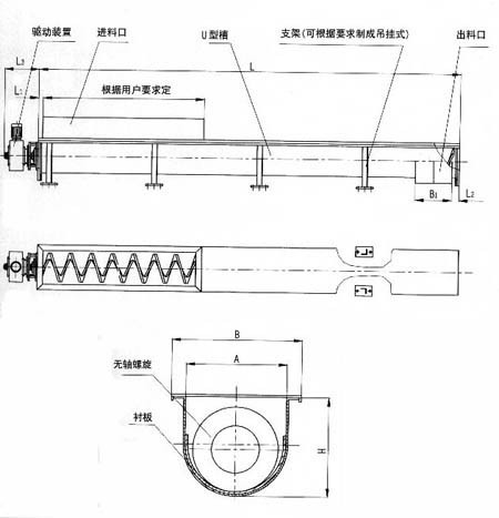 WLS无轴螺旋输送机主要用于废水处理,造纸业、化学工业垃圾等行业输送站附性较强的物料,糊状粘稠物料(如化工原料、废纸浆、麦芽、污泥等)以及易缠绕物料(如生活垃圾),具有独特优势。所以无轴螺旋输送机又称防缠绕输送机、垃圾处理输送机。